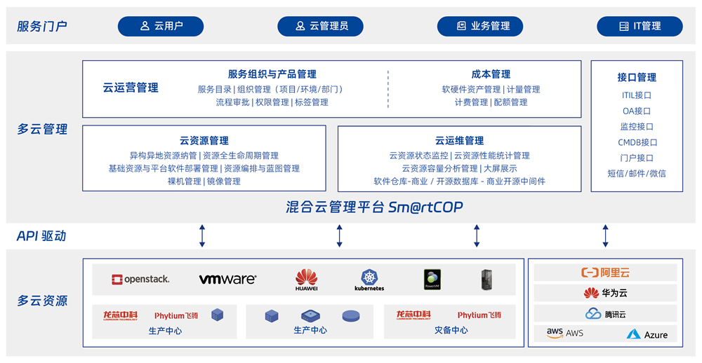 面向各行業用戶多云資源管理、運維及服務提供的綜合挑戰,提供異構異地異芯片多云資源的統一管理、統一運維、統一監控及統一運營服務,簡化多云管理復雜度,提升用戶用云滿意度,釋放云平臺業務價值。