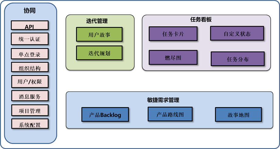 • 協(xié)同管理部分(包括平臺(tái)的API,認(rèn)證管理,組織結(jié)構(gòu),權(quán)限管理以及系統(tǒng)的配置);